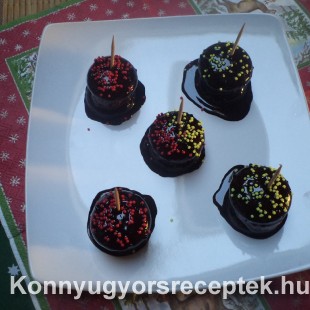 Mikor belemártom a csokiba a kicsi muffin papírba teszem hogy a csoki ne folyjon el a tálcán. Ha kihűlt letakarva 1 napra hűtőbe teszem hogy a piskóta tallér megpuhuljon. Kókusszal is meglehet szórni a tetejét.