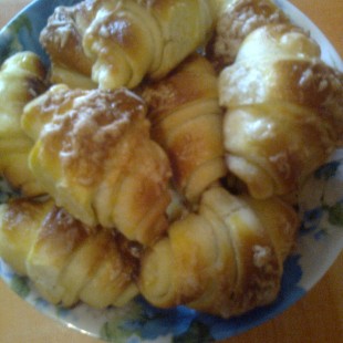 A tojássárgáját krémesre keverem 6 evőkanál vízzel és a cukorral.