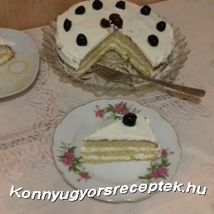 A kihűlt piskótát megtöltjük, majd bevonjuk a krémmel a tortánkat, és díszítjük kandírozott cseresznyével.
