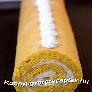 Amikor kihűlt a tészta, rákenjük a krémünket és fóliába tekerjük. Pár orára a hűtöbe tesszük.