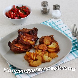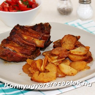 Tálaláskor a sült oldalast ízlés szerinti körettel, és salátával kínáljuk.