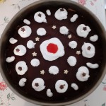 A mascarponét cukorral keverni,majd jön a rumaroma, és a gesztenye következik, A pudingot 3 dl tejjel, 2 kanál cukorral főzni, ha kihűlt, bele a margarint/vajat., és a félretett mascarponét. Végül a lapra előbb csokis , majd a gesztenyés krémet tenni, ,tetejére jöhet a csokimáz, 10 dkg tejcsoki 1 dl tejszínnel.
