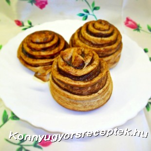 6. Vágj 2 cm-es szeleteket a tekercsből, és kilisztezett tepsire rakosgasd szét őket. Még kb.15 percet hagyd őket kelni, majd előmelegített sütőben, én 180 fokon hőlégkeveréses sütőben sütöttem 20 percig.