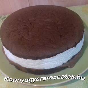 5. A túrókrémet a kihűlt szilvapudingra rétegezzük, majd befedjük a másik tortalappal.