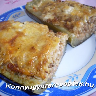 A cukkiniket hosszába kettévágjuk, a magvas részeket kivágjuk. Kicsit besózzuk, állni hagyjuk. A füstölt szalonnát apró kockákra vágjuk. Egy kicsi olajjal sütjük, amikor már kezd sülni a vöröshagymát belevágjuk és megpirítjuk. Beletesszük a paradicsomot és a fűszereket, majd a darált húst is beletesszük. Kevergetve készre sütjük. Közben a megmosott rizst a szokott módon megfőzzük, majd belekeverjük a húsba. Ezzel a töltelékkel megtöltjük a cukkiniket, tejfölt teszünk a tetejére, majd megszórjuk reszelt sajttal. Kiolajozott tepsibe tesszük a töltött cukkiniket és lefedjük fóliával, majd aa sütőbe készre sütjük.