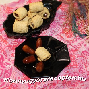 A sima részébe egy-egy ki magozott datolyát tekerünk. Sütőpapírral ellátott tepsire tesszük, és 190 fokra előmelegített sütőben aranybarnára sütjük.