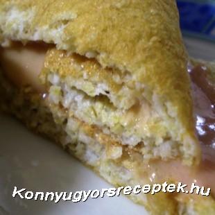 Ha kihűlt, a szokásos palacsinta-töltelékkel megtöltjük és felcsavarjuk. Én most kevés vízzel elkevert fehérjeport tettem bele.