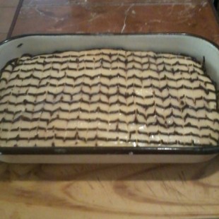 30 x 20 cm tepsibe nyújtjuk, erre jön a töltelék: