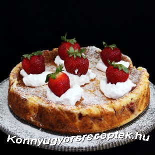 Tálalás előtt helyezzük a tortát egy tálcára, ízlés szerint szórjuk meg porcukorral, díszítsük tejszínhabbal és eperrel, majd felszeletelve kínáljuk.