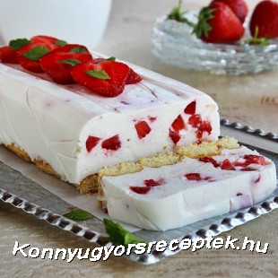 Közvetlenül tálalás előtt vegyük ki a hűtőből, majd fordítsuk rá egy tálcára, hogy a babapiskóta kerüljön alulra. Ezután a félretett eperszemekkel ízlés szerint díszítsük, majd szeleteljük fel, és úgy kínáljuk.