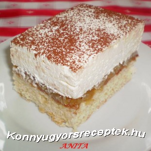 A pudingos kremet elkavarjuk a felvert tejszinnel (em mixert hasznaltam), es,az almas feluletre simitjuk