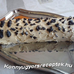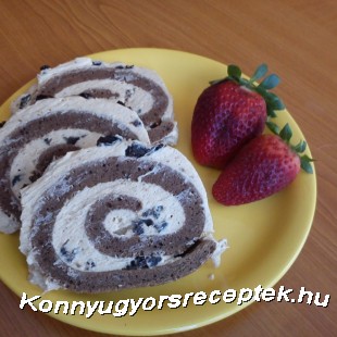 A tojásokat kettéválasztjuk , a fehérjét fele cukorral, a sárgáját pedig a cukor másik felével és az olvasztott Rámával kikeverjük. A kakaóport a liszttel elkeverjük. A habbá vert tojásfehérjét hozzáadjuk a tojássárgás részhez, majd a kakaós lisztet beleszitáljuk és jól elkeverjük. A masszát sütőpapírral bélelt tepsibe tesszük és elsimítjuk. Előmelegített sütőben 180 fokon 15 perc alatt megsütjük, majd egy konyharuhára feltekerjük és hagyjuk kihűlni. A puha Rámát a porcukorral, a lereszelt gesztenyepürével és a rummal habosra keverjük, majd hozzáadjuk a darabokra vágott aszalt szilvát. A krém 2/3 részét a tésztába töltjük, majd a maradék krémmel a külső részét is bevonjuk, amit aszalt szilvával díszíthetünk.