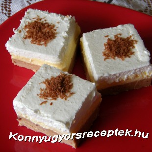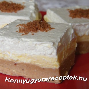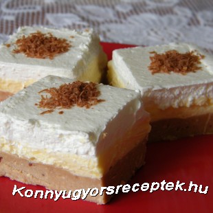 A habtejszínt felverjük, a habfixálót elkeverjük a vaníliás cukorral hozzáadjuk a habhoz és jó keményre felverjük. A habot rásimítjuk a pudingréteg tetejére. Hűtöben pár órát pihentetjük (vagy akár egy éjszakát) és utána kockákra vágjuk. A tetejét csoki vagy gesztenye reszelékkel díszíthetjük. Egyszerű és nagyon finom sütés nélküli sütemény !