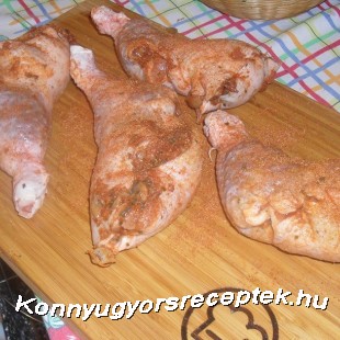 A csirkecombok felső csontját óvatosan kivágjuk. A combokat kissé megszórjuk a szárnyas fűszer keverékkel. A hagymát , és a gombát kockára vágjuk, kevés zsiradékon megdinszteljük. A zsemlét beáztatjuk vízbe, majd jól kinyomkodjuk. Hozzáadjuk a tojást, a kihűlt gombás keveréket, megfűszerezzük, összekeverjük. A csontok helyére betöltjük a tölteléket, fehér cérnával összeöltjük. Kiolajozott tepsibe téve alufóliával letakarjuk, és 220 C fokon kb. 1 óra alatt puhára pároljuk. A fóliát levéve még kb. 20-25 perc alatt szép pirosra sütjük. Bármilyen körettel, hidegen melegen egyaránt kitűnő.