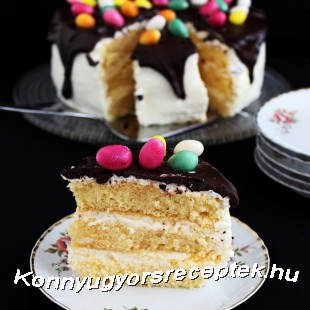 Az egyik korong alját megcsepegtetjük rummal, tejszínt kenünk rá, és ráborítjuk a tetejét. Tálra fektetjük. Ugyanígy járunk el a többi koronggal is.