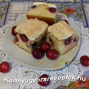 Az megmossuk kimagozott cseresznyét le csepegtetjük, majd a félével megszórjuk a tésztát, majd a maradék tésztát rásimítjuk és a maradék cseresznyével megszórjuk a tészta tetejét.