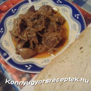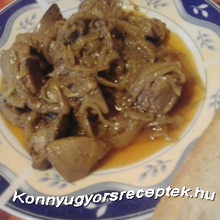 Hideg vízben a májat áztatjuk és megtisztítuk a hártyáitól. Felszeleteljük tetszés szerinti darabokra. A megtisztított hagymákat felaprítjuk hosszukás szeletekre. A hagymát olajon üvegesre pároljuk, majd ezután ráöntjük a májat és nagy lángon folyamatos kevergetés mellett kb 6 percig sütjük. Amikor majdnem elkészül, akkor takarékra vesszük a lángot és a fűszereket beletesszük. Megkavarás után pedig elzárjuk a lángot.