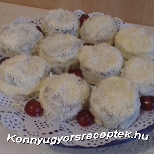 4. A kakaós piskóta korongokból kettőt összeragasztok a krémmel, körbe is kenem és a tetejét is, majd kókuszreszelékbe meghempergetem.