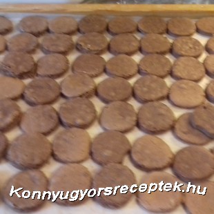 2. Amikor mindkét adag tészta megsült, egy kb 4,5 cm átmérőjű pogácsa szaggatóval kiszaggatom és addig hűlni hagyom, míg elkészül a krém.
