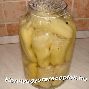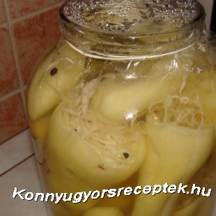Beletesszük a borsot, babérlevelet, celofánnal lefedjük, megvárjuk míg kihűl és mehet a kamra polcára.