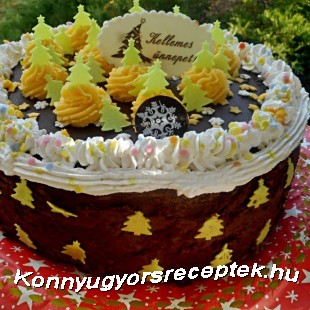 A kihűlt kakaós piskótát 3 lapra vágjuk,betöltjük a krémmel ,a torta oldalára is hagyunk belőle.