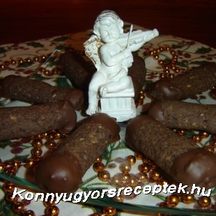 6.A tejcsokoládét az evőkanál olajjal vízgőz felett felolvasztjuk és a kihűlt rudacskák mindkét végét belemártjuk,majd hideg helyre tesszük,hogy rákeményedjen.