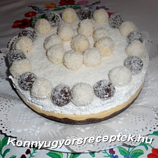 Megszórjuk kókuszreszelékkel és a két féle golyókkal díszítjük.