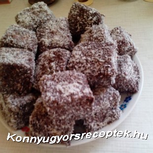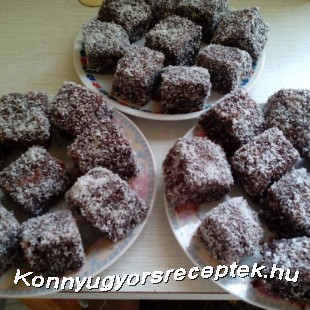 Utána kikészítünk 2 db nagyobb lapostányért, vagy tálat, s a tésztakockákat egyesével villa segítségével belemártogatjuk a csokimázba, majd a kókuszreszelékbe, s tányérokra rendezzük. Arra azért vigyázzunk, hogy ne érjenek egymáshoz, s hűtőbe rakjuk egy éjszakára.