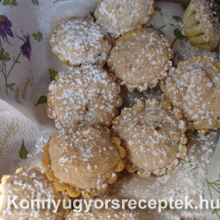 1: A tésztának valókat összegyúrjuk, vékonyra kinyújtjuk, pogácsaszaggatóval köröket kell kiszúrni, majd a kosárka formába egyenként belenyomkodni.