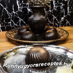 4. Az étcsokoládét gőz felett megolvasztjuk, hozzáadjuk az olajat és pár csepp fekete ételfestéket, majd lassú mozdulatokkal simára keverjük. Kiskanál segitségével kikenjük vele a formákat, majd dermedésig fagyasztóba tesszük.