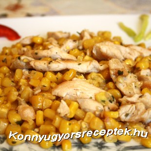 2. A petrezselymet leöblítjük, apróra vágjuk. Ha a hús megpuhult, beletesszük a kukoricát, a petrezselymet, megsózzuk, és jól átforraljuk.