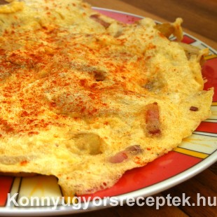Én a végén a tojást a palacsintához hasonlóan feldobva átfordítom így nem eshet szét. Aki szereti, a szalonna mellé tehet pár karika füstölt kolbászt is.