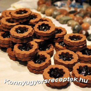 Kiszaggatjuk, egyik felét simára, a másik fél adag tészta közepébe pedig kis lyukat szaggatunk. Sütőpapíros tepsire tesszük.
