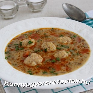 A megformázott gombócokat ezután tegyük a forrásban lévő levesbe, majd addig főzzük, míg a zöldségek, és a gombóc is puhára fől.