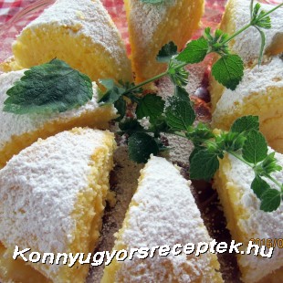 Ha háromszögletűre szeljük, a képen látható módon rendezhetjük tálra. Enyhén porcukrozva kínáljuk.