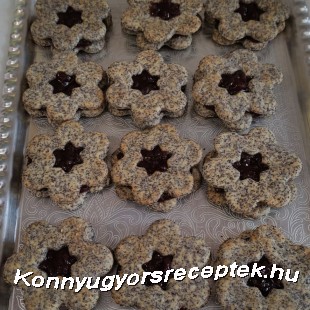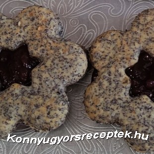 A tésztát vékonyra kinyújtjuk, virág formájú szaggatóval formákat vágunk ki. 160-170 fokon kb. 8 perc alatt megsütjük.
