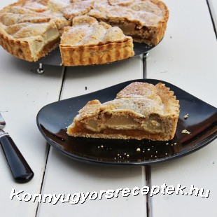 Tálalás előtt ízlés szerint szórjuk meg porcukorral, majd szeleteljük fel, és úgy kínáljuk. A tészta finom omlós, a marcipánhoz pedig nagyon jól illik a vaníliás-fahéjas körte.
