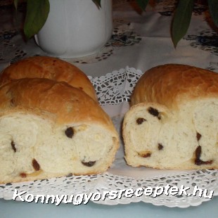 Nagyon finom puha foszlós kalács, a mazsolától szaftos.