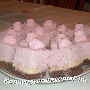 A puha vajat habosra keverjük a kétféle cukorral, hozzáadjuk a tojásokat, a gőz fölött megolvasztott csokoládét, végül a lisztet. Sütőpapírral bélelt tepsibe ( 20x30 cm) simítjuk. A mascarponés réteghez a kétféle cukrot a tojásokkal össze turmixoljuk, hozzáadjuk a mascarponét, simára keverjük, és a csokis rétegre simiítjuk. 180 C fokos sütőben megsütjük. (kb.40 perc). A tejszínt kemény habbá verjük , a zselatint kis vízzel a mikróban felmelegítjük, majd az előzőleg turmixolt gyümölcshöz adjuk, és a cukorral összedolgozzuk. A kész krémhez óvatosan a felvert tejszínhabot. Ha a süti kihűlt, egyenletesen rásimítjuk, majd a hűtőben pihentetjük. Tetszés szerint díszítjük.