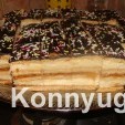 2: Porcukrot a vajjal kikeverjük, pudingot grízzel felfőzzük, hűlés után egybe keverjük. Egymásra rétegezzük a a lapokat: