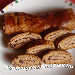 Megkenjük szilvalekvárral, és megszórjuk darált, vagy durvára vágott dióval.