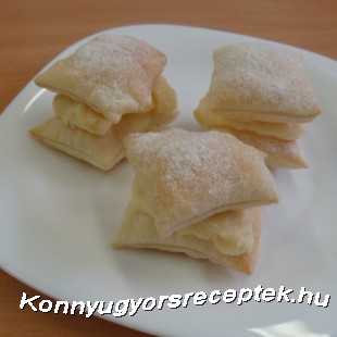 A tej nagyobb részét felforraljuk, közben a cukrokat a liszttel, tojássárgájával és a maradék hideg tejjel csomómentesre keverjük.Mikor a tej gyöngyözik, besűrítjük a csomó mentes krémmel, 1 percig főzzük, majd hűtőfürdőbe tesszük.Vigyázzunk a sűrítésnél, nehogy a tojássárgája kicsapódjon, folyamatosan keverjük.Ha a krém teljesen kihűlt,habzsák segítségével nyomjunk a tésztarétegek közé ízlés szerinti mennyiséget.