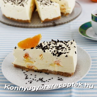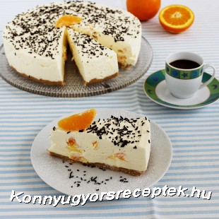 Vegyük ki a tortaformát a hűtőből, majd egyenletesen kanalazzuk rá a kekszes alapra a narancsos-mascarponekrémet.