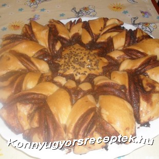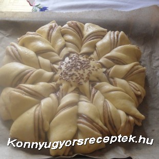 Az élesztőt cukor tejben felfuttatjuk. A többi hozzávalóval sima tésztát dagasztunk, a vége felé belegyúrjuk a meleg vajat. Meleg helyen kétszeresére kelesztjük. Ha megkelt 4 cipóba vesszük. Kicsit pihentetjük. Majd egyenként tányér nagyságúra nyújtjuk, nutellával megkenjük, és egymásra helyezzük. A felső lapot nem kenjük meg. Egy pohárral a közepére " benyomatot" készítünk, és pizza vágóval ( a kőr széléig) 16 csíkra vágjuk. ( először 4, majd felezzük -8- felezzük :16.) Egy-egy csíkot kézbe véve ellentétes irányban kifele megcsavarjuk, kétszer,, háromszor. Tojással lekenve ismét kelesztjük. Ha megkelt 180 C fokos ( gőzös) sütőben szép pirosra sütjük. Kb. 35-40 perc.