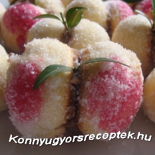 A töltelékkel megtöltjük a gombócokat, majd kettőt összeragasztunk, egyik felét vérnarancs, másik felét őszibarack aromával bekenjük.