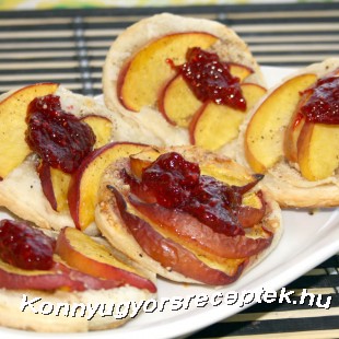 Kb. 15 perc alatt aranybarnára sütjük, közben a cukor enyhén karamellizálódik. Kivesszük a sütőből, és tálalótálra tesszük. Melegen vagy langyosan, tejszínhabbal, lekvárral esetleg egy gombóc fagylalttal kínáljuk.