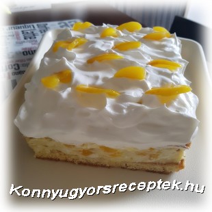 - 5 dl Joya mandulás tejben megfőztem 2 csomag vaníliás pudingport majd ízlés szerint édesítettem és hagytam kihűlni ! Közben felvertem egy 4 dl Meggle decor tejmentes habot egy fél csomag habfixálóval utána a krémbe raktam kb 2 evk. habot ezt jól kikevertem robotgéppel utána rákentem vékonyan a krémet a kihűlt tésztára megszórtam őszibarack darabokkal, majd rákentem az összes krémet, megint őszibarack darabokkal szórtam végül rá raktam a habot és őszibarack szeletekkel díszítettem!