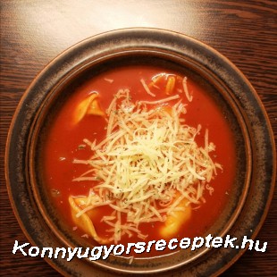 2. A levest közepes lángon forrásig melegítjük, majd hozzáadjum a tortelliniket és fedő alatt kb. 8 perc alatt puhára főzzük.