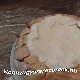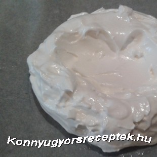 Sütőpapírra rajzolunk egy kört, ezt nagyon kevés olajjal megkenjük. A habot kikanalazzuk a rajzolt kör közepére, nagyjából elsimítjuk, a közepébe mélyedést formázunk.