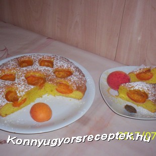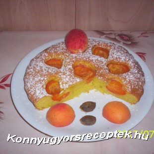 A pite tésztát a formába ötjük .elsimítjuk,majd a felezett sárgabarackkal kirakjuk a tetejét.
